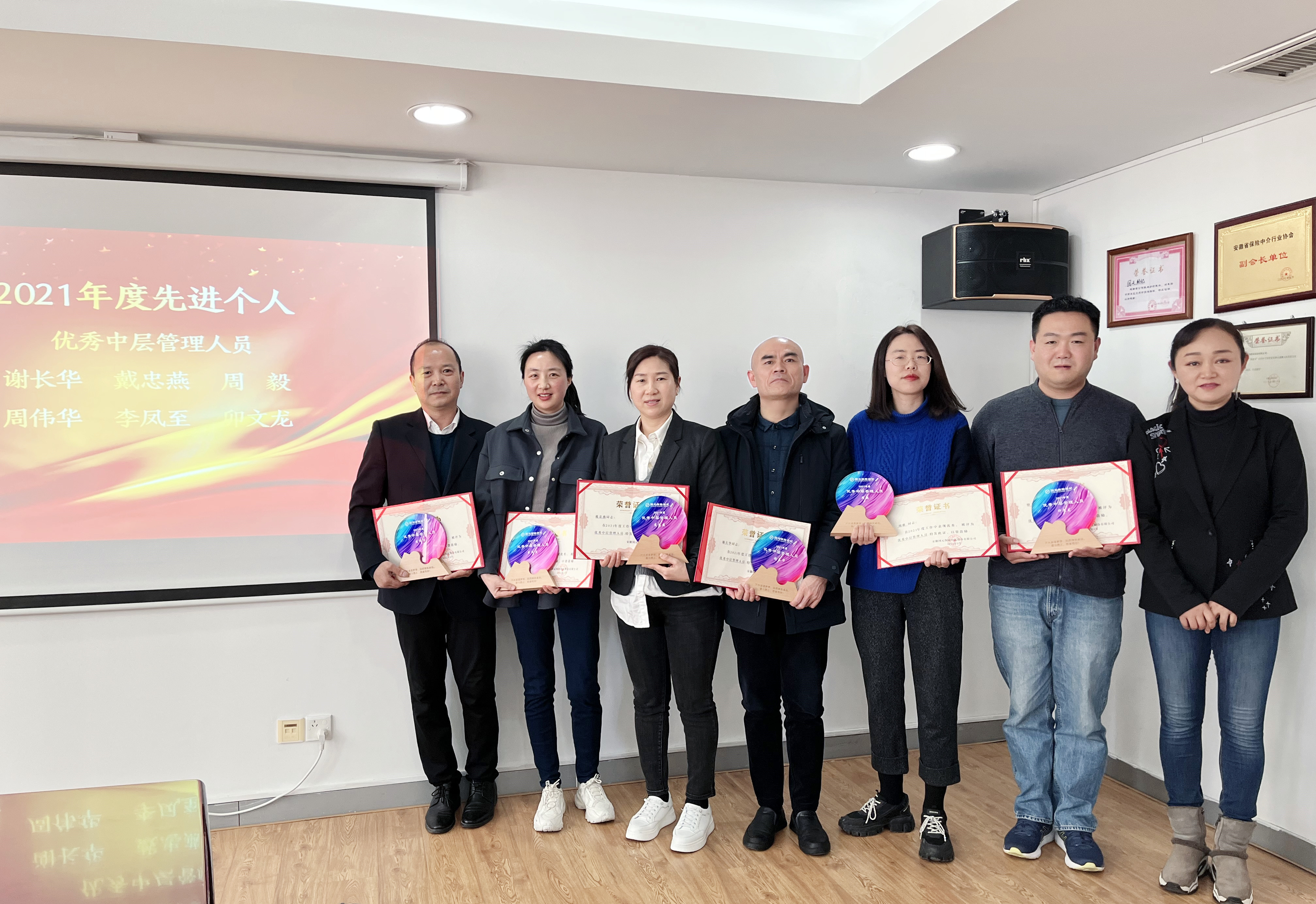 簽約結(jié)束后,總經(jīng)理潘惠、總經(jīng)理助理戴忠燕對榮獲2021年度先進(jìn)集體獎、先進(jìn)個人獎、特別貢獻(xiàn)獎、機(jī)構(gòu)聯(lián)動獎的先進(jìn)集體代表和個人進(jìn)行了表彰、頒獎并合影留念,“先進(jìn)集體”和“先進(jìn)個人”代表作交流發(fā)言。